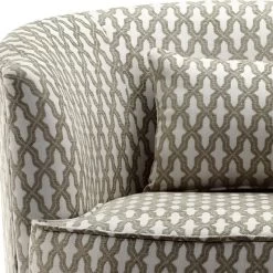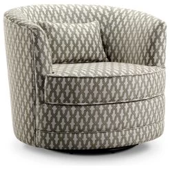 Add unique flair to any room with this transitional chair, this Dmitri swivel barrel chair is playful yet sophisticated. Founded atop a swivel iron tube base, and solid Maplewood frame provides a ground of strength. The rounded seats and embraces the deep barrel shape for cozy inviting looks. Your utmost comfortable impression begins with the moment of contact, its linen upholstery and foam-padded seat gently hug your entire body. Our S spring and web suspension system provides ultra-buffer for impact and enhancing the comfortability when sitting. The patterned pillow makes it even more inviting for any restful purpose.
