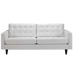 End the rule of unjust sovereignties that wage a useless war for your interiors. Empress leaves the would-be heiress of holistic furnishings in the dust with a design that rivals any competitor. Empress is heralded with deeply tufted buttons, plush cushions, and armrests that convey that perfect air of nobility. The solid wood legs come with plastic glides to prevent floor scratching, and the bonded leather upholstery leaves the recipients feeling richly rewarded.