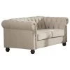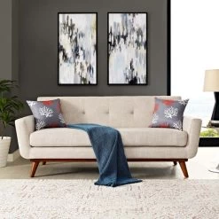 Gently sloping curves and large dual cushions create a favorite lounging spot. Whether plopping down after a long day at work, settling in with coffee and brunch, or entering a spirited discussion with friends, the Engage loveseat is a welcome presence in your home. Five tufted buttons create eye-catching appeal, adding depth that brings your sitting décor to center stage. Four cherry color rubberwood legs and frame supply a solid base to the comfortable upholstered material.