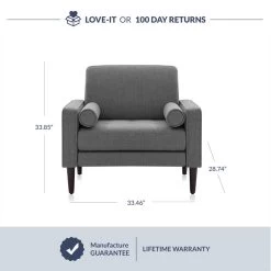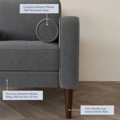 - Designed with square arms, tufted seat cushion, and bolster throw pillows, create a contemporary feel to class up your home or office.