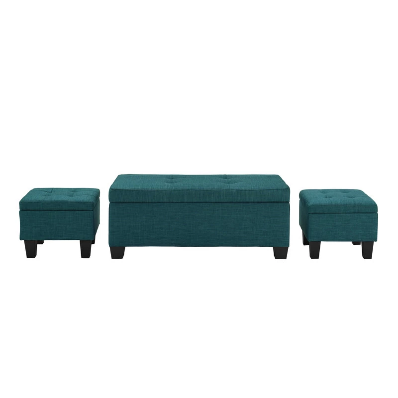 The stylish Everett 3-Piece Storage Ottoman Set provides handy storage while enhancing your modern design. Featuring a tufted bench with a full-size storage compartment and 2 smaller ottomans, your living room will have plenty of storage space and extra seating. The Everett 3-Piece Storage Ottoman Set pushes the boundaries of contemporary style with aesthetically pleasing function.