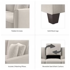 - Sofa comes with two matching pillows to give your home’s living room a coordinated appearance
