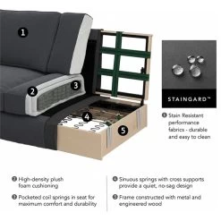 - Durable framework includes a quiet sinuous spring design with cross supports that won’t sag or shift over time
