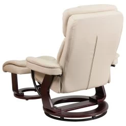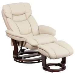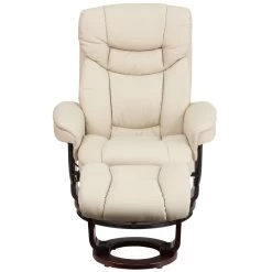 - Flash Furniture BT-7821-BGE-GG Contemporary Beige Leather Recliner And Ottoman With Swiveling Mahogany Wood Base Features: