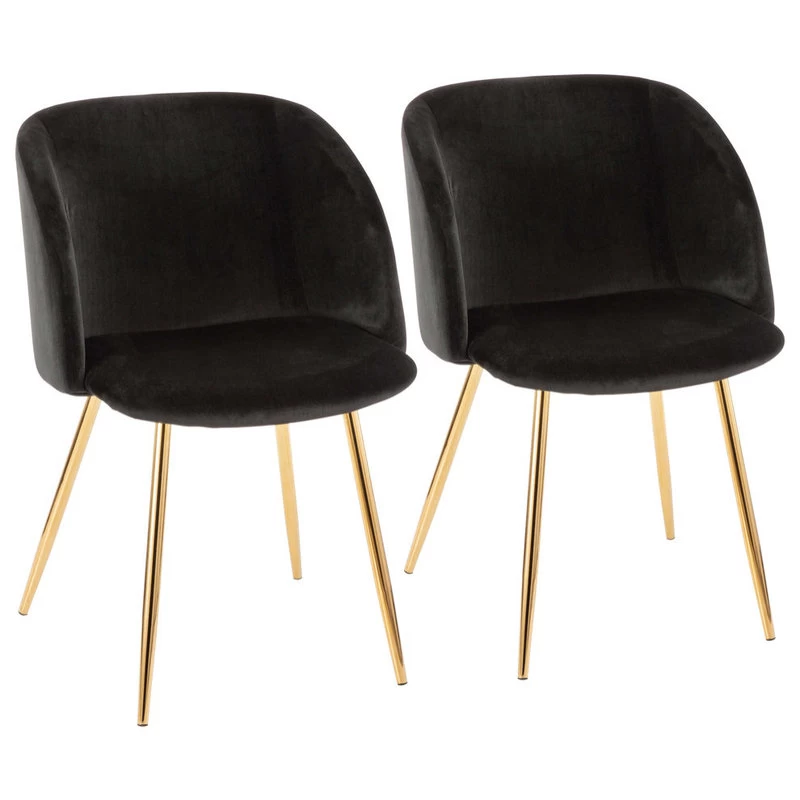 - Fran Contemporary Chair in Gold Metal and Black Velvet by LumiSource – Set of 2Contemporary styling