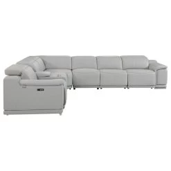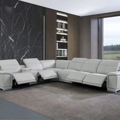 Enjoy modern style and top-notch relaxation with this Italian Leather Reclining Modern Sectional. This beautiful sectional features comfortable seat cushions, plush back and headrest, pillow arms, and Genuine Italian Leather upholstery. The elegant design and exquisite cushioning provide perfect comfort that will keep you cozy, and the extra padded arms add the perfect finishing touch. This Reclining sectional will transform your living room with its modern design. It displays an aesthetically pleasant linear design with chrome accents to foster sophistication. A great way to convey simple luxury in any room. Mindfully designed with gentle arms, & plush high density seat cushions for maximum comfort, this masterpiece is a delightfully distinguished mix of functionality and style. The chrome legs effortlessly elevate any room with a touch of contemporary design.