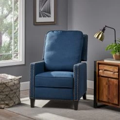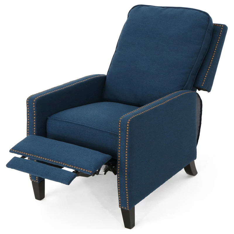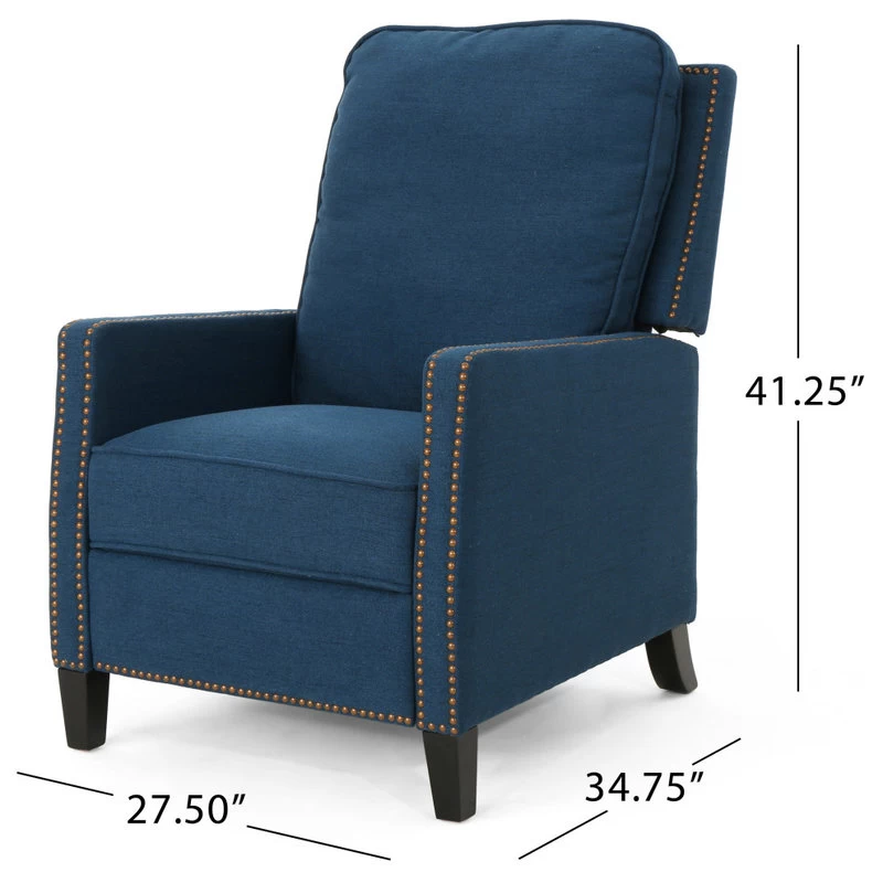 This push back recliner is a wonderful addition to any style home. Featuring a classic design with stud covered frame, this recliner is a statement in and of itself. With extra plush cushions and a plush seat backing, you can not go wrong with this recliner. Sure to become your favorite chair in no time.