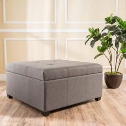 DIMENSIONS: Choose an accessory that is the perfect size for you and your furniture. This storage ottoman is 35.00″ W x 35.00″ D x 18.50″ H. You will love how much your space can transform with the simple addition of this charming ottoman.