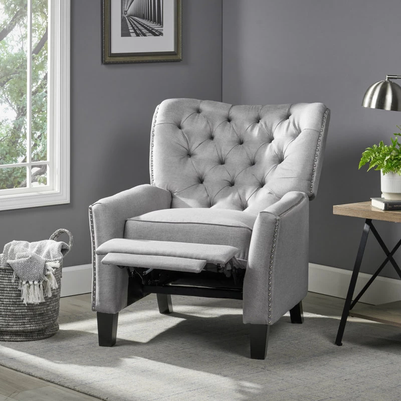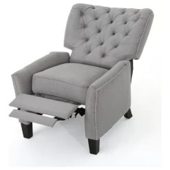 This attractive recliner adds something extra to a classic tufted armchair. Featuring beautiful, hand-crafted upholstery details over a sturdy, precision mechanism, this piece will hold up to daily use and still look great. Make sure you always have a place to kick up your feet without adding the clutter of an ottoman.