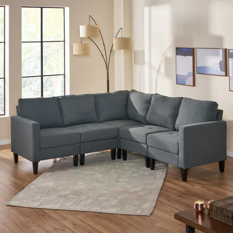 Whether you are looking to host an evening get-together with friends or settling in for movie night, this sectional couch is a great addition for your living room. This sectional is conveniently adaptable, allowing you to mix and match the pieces to create the perfect set for you. This couch features soft fabric and plush cushions, to give you the best relaxing experience in your own home. From its streamline design to tapered legs, this sectional sofa is a chic centerpiece for your interior space.
