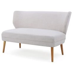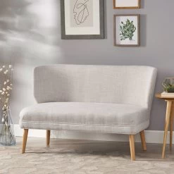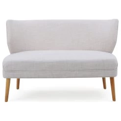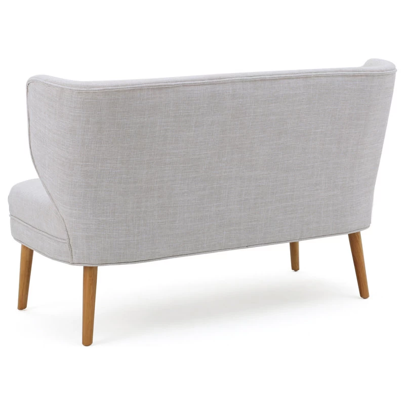 Embrace simple style and functional design with our charming upholstered loveseat that brings unparalleled looks to your interior space. Featuring an encompassing curved backrest and slender wood legs, this exquisite loveseat is the perfect addition for any living room, bedroom, or foyer. This takes a gorgeous classic look and brings an impressive modern twist, easily anchoring your decor in an atmosphere of elegance. This loveseat is finished with iconic splayed legs, bringing a stunning mid-century modern look and outstanding durability to your home.