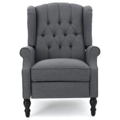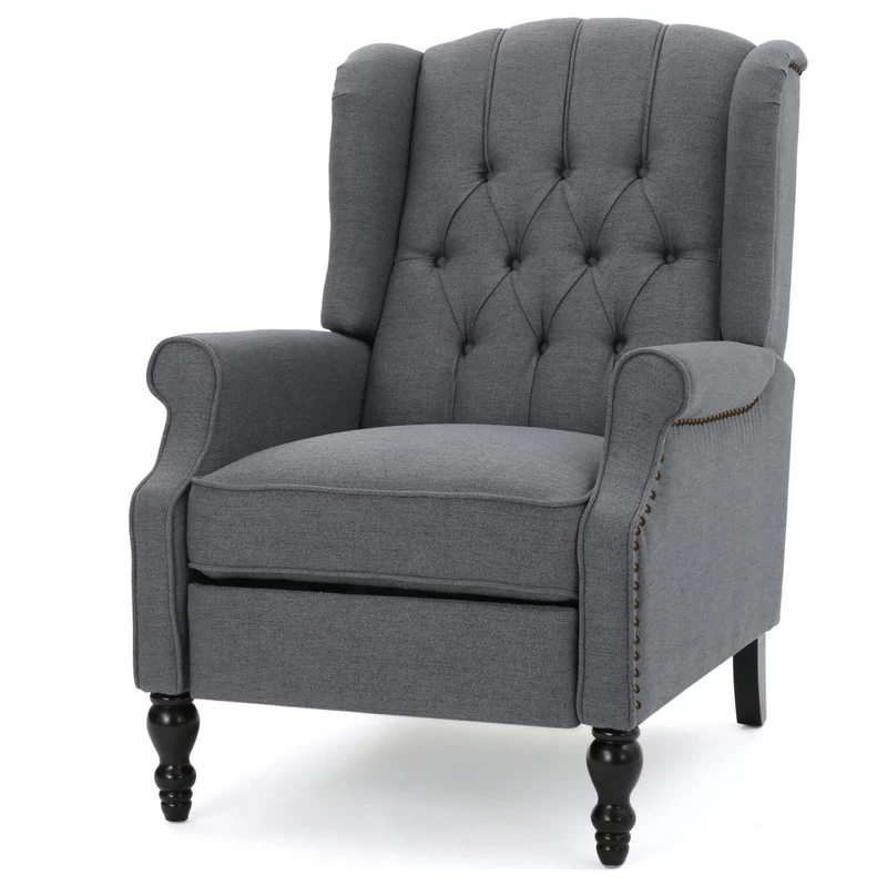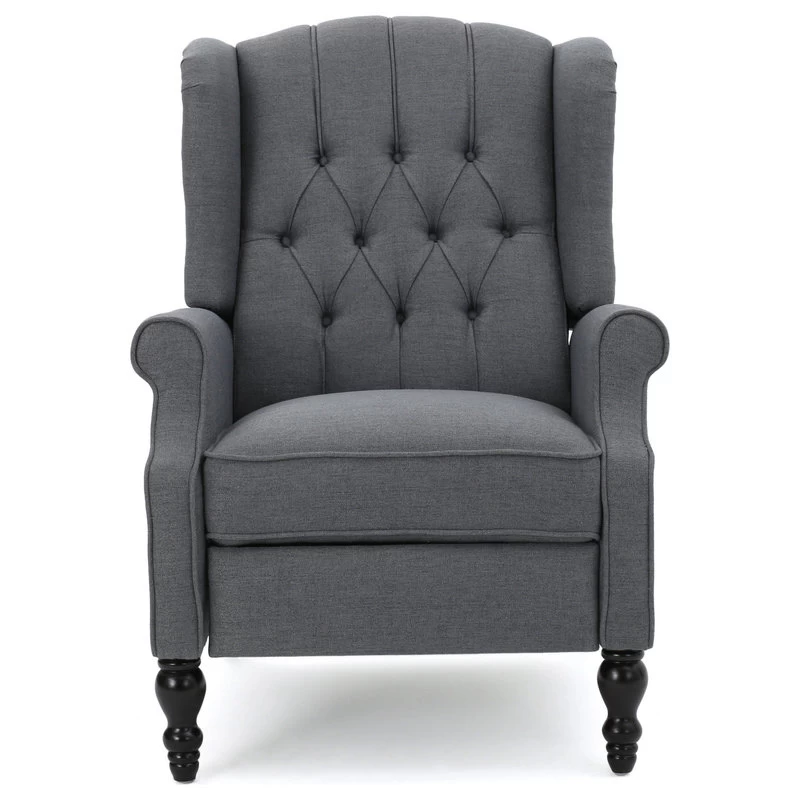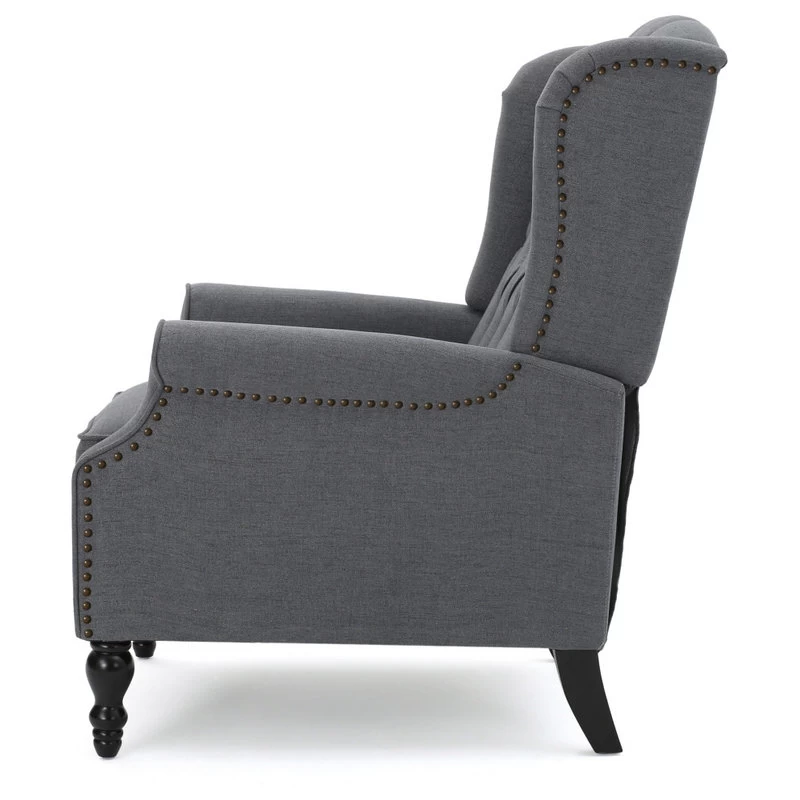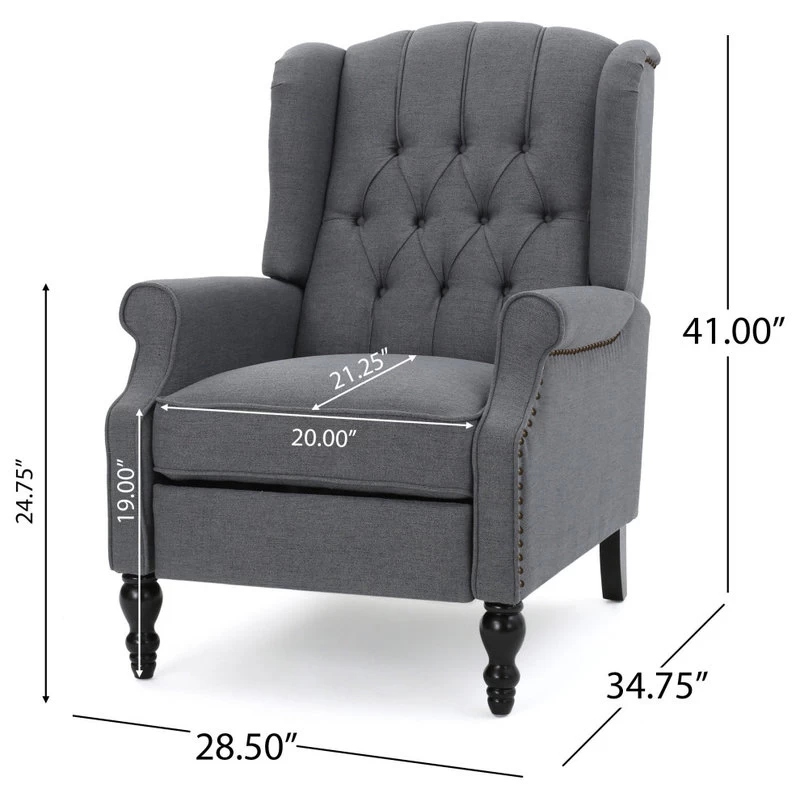 Perfect for entertaining or relaxing, our armchair uses a smooth pushback reclining mechanism and carefully crafted accents to tie your home together with absolute sophistication. This pushback recliner features gorgeous details such as button tufting, diamond stitching, and tonal piping to bring your decor to the next level. Finished with a lovely wingback design and rolled recessed arms, our recliner is as stylish as it is functional.