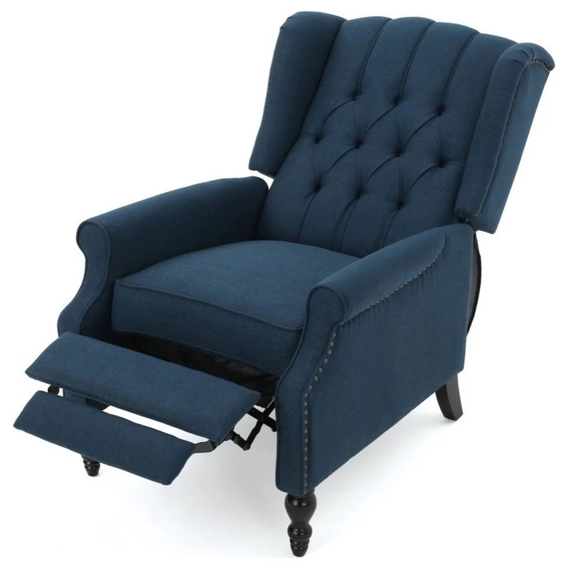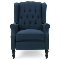 Perfect for entertaining or relaxing, our armchair uses a smooth pushback reclining mechanism and carefully crafted accents to tie your home together with absolute sophistication. This pushback recliner features gorgeous details such as button tufting, diamond stitching, and tonal piping to bring your decor to the next level. Finished with a lovely wingback design and rolled recessed arms, our recliner is as stylish as it is functional.