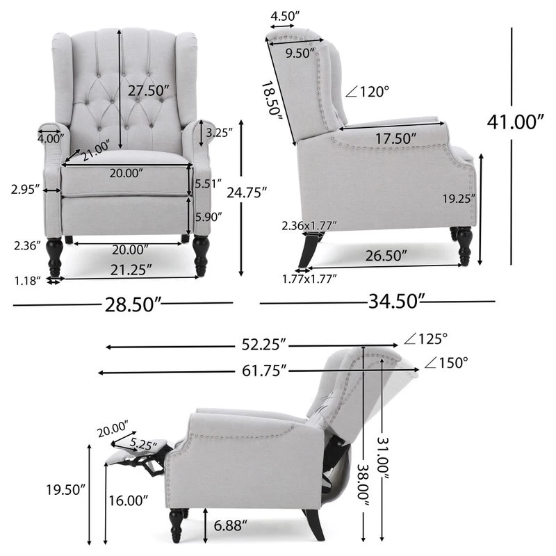 DIMENSIONS: Choose an accessory that is the perfect size for you and your furniture. This recliner is 28.50″ W x 34.50″ D x 41.00″ H in its upright position and 28.50″ W x 62.00″ D x 29.00″ H when fully reclined. You will love how much your space can transform with the simple addition of this charming recliner.