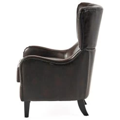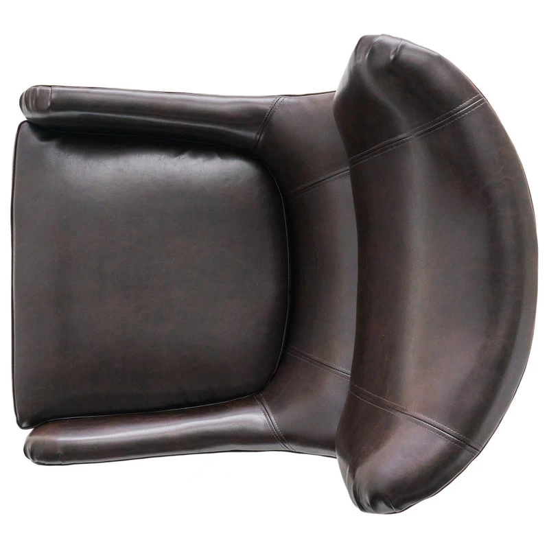If you are looking to step away from traditional club chairs and own something with both class and a contemporary flair, then our Ellery Brown Leather Club Chair is the piece for you. Sink into this comfortable chair, made of soft, durable bonded leather with a sturdy real wood frame that will mesh beautifully with any decor, in any room. The beautiful, eye-catching bonded leather upholstery and modern twist on a classic look is sure to be the perfect chair for your living room, dining room, office, or study.