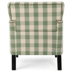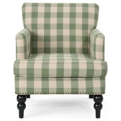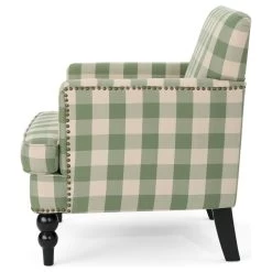 Even the smallest spaces can benefit from our beautiful club chair’s inviting ambiance and stylish charm. Boasting smooth, lovely upholstery and a soft cushion, this cozy, farmhouse-style chair invites you to take a seat. Eye-catching nailhead trim and carefully-turned legs ensure that no detail is forgotten. Completed by a sleek silhouette and rounded armrests, this modern chair is pretty and practical. Design a quaint little reading and conversation nook, or use this chair in your living room for added seating.