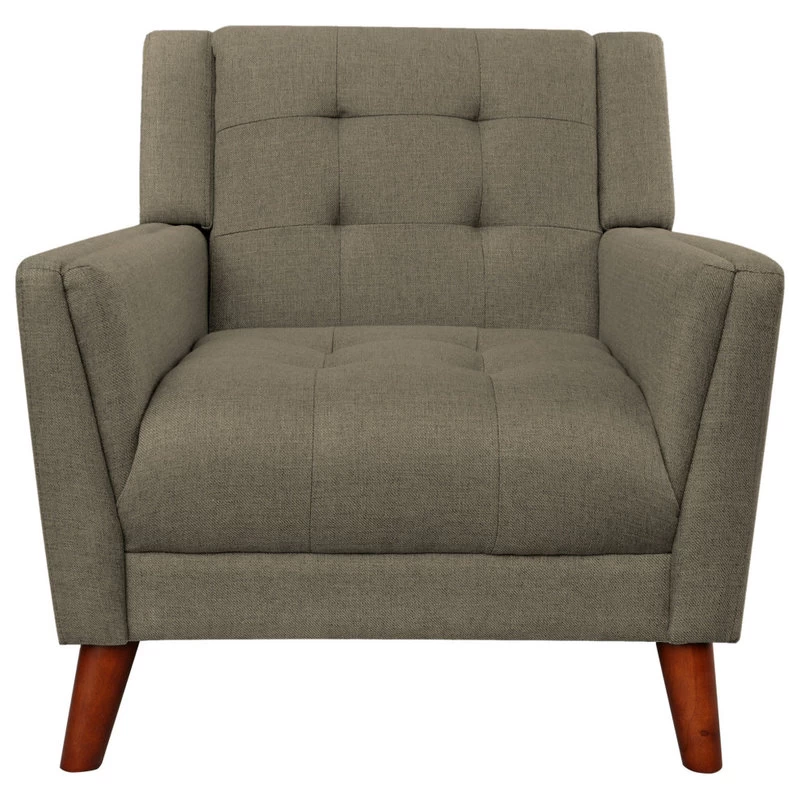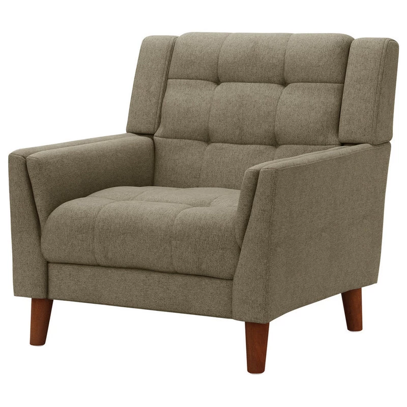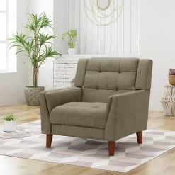 MID-CENTURY MODERN: Blending together iconic splayed legs with beautifully tufted upholstery, our club chair offers a mid-century look to your lounge space. With its clean lines and understated look, this chair uses new materials to reimagine a traditional design.