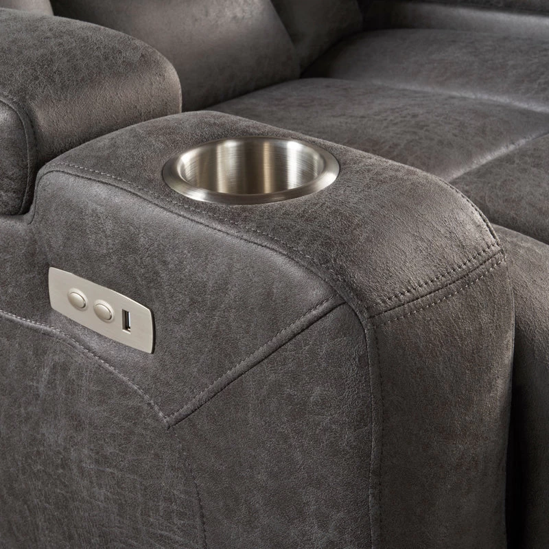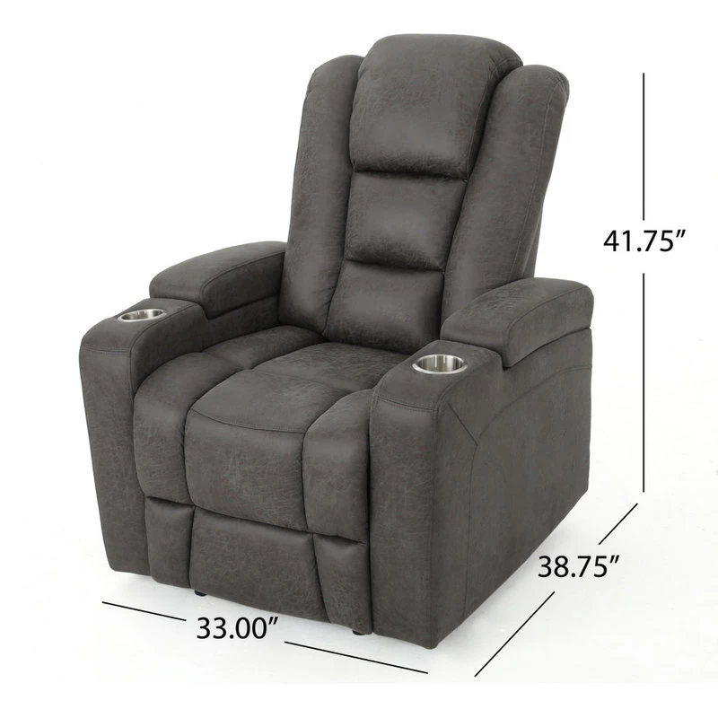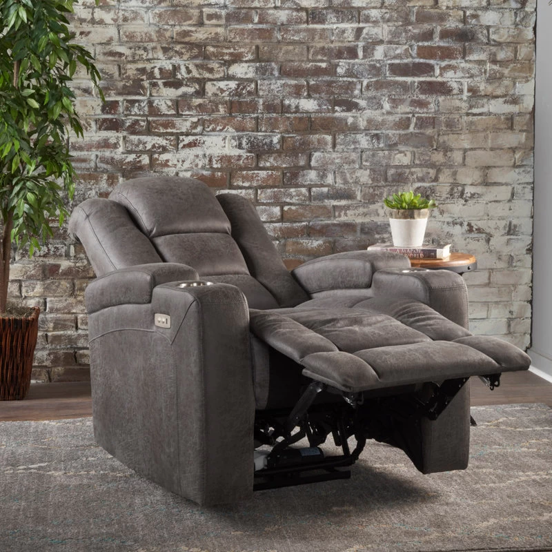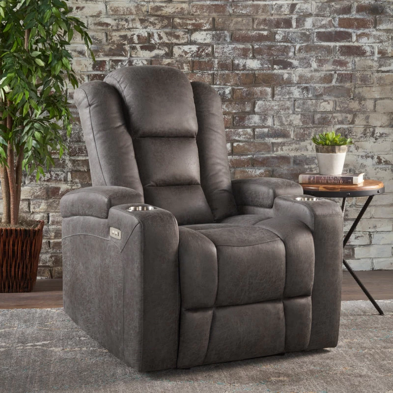 Our delightful motor-powered recliner chair provides an incredibly high degree of refreshment in a compact and attractive package, emphasizing a sophisticated and charming contemporary design. Featuring a plush tufted backrest, armrests with storage, an included USB port, and two cup holders, this recliner pairs perfectly with its convenient functionality allowing for high comfort with little effort. Sure to become the new favorite spot of leisure, you and your family will surely enjoy this recliner whenever you have a moment to unwind.