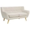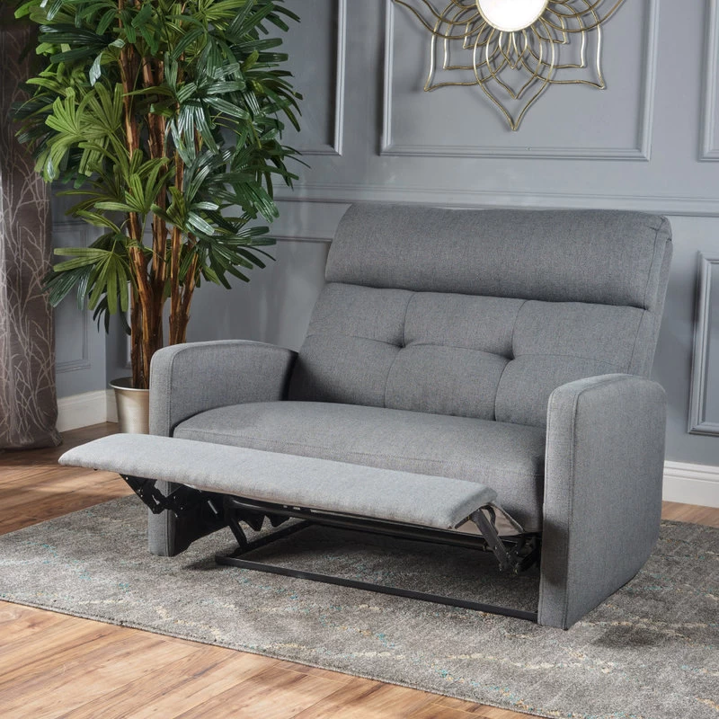 Live and lounge in comfort and style with our refined reclining loveseat. Complete with a squared back, coordinating armrests, and a push-back reclining function, this loveseat provides a cozy place to land. Subtly tapered birch wood legs add to the modern vibe, and luxe, waffle tufted upholstery proves just how well-made this loveseat truly is. Featuring a modern silhouette, this contemporary sofa beautifully anchors your living room. This eye-catching sofa is sure to be the most commanding piece in your entire living room.