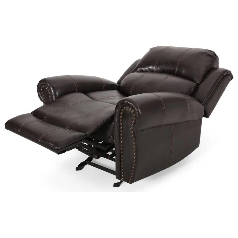 The Harbor bonded leather glider recliner club chair is the perfect companion for any media room or living room. The chair’s dual-function operation allows you to recline and elevate your tired feet at once.