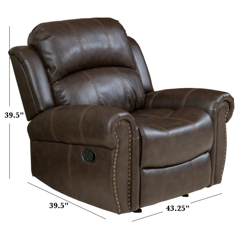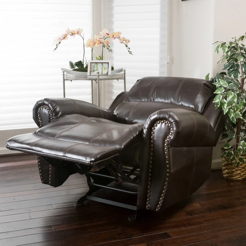 The Harbor PU leather glider recliner club chair is the perfect companion for any media room or living room. The chair’s dual-function operation allows you to recline and elevate your tired feet at once.