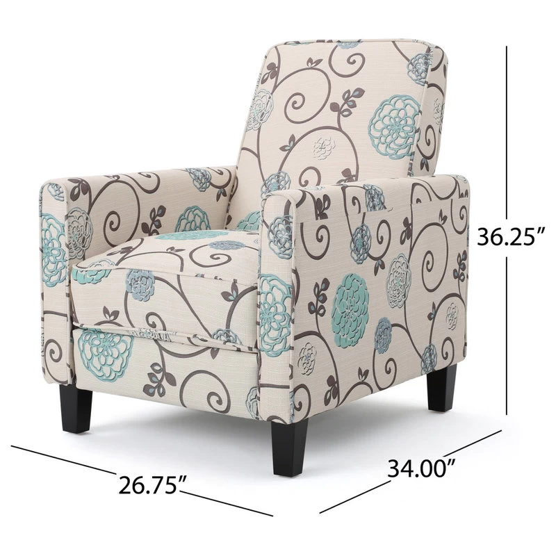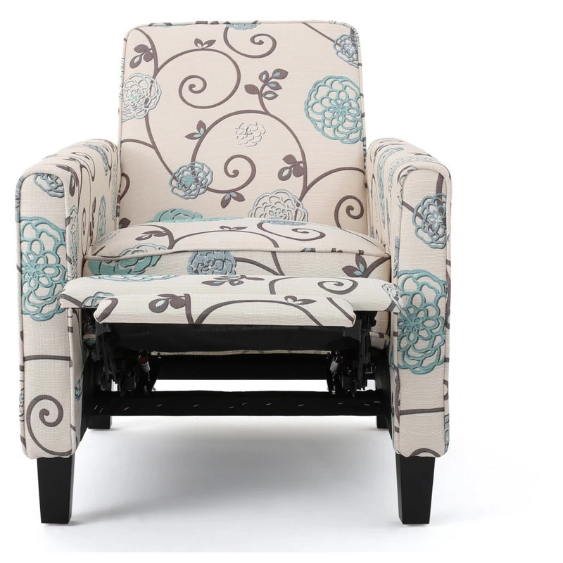 Having limited space in your living room does not mean you have to settle for inferior furniture. Our charming recliner club chair offers impressive comfort while maximizing your living space with its petite design. Featuring piped edged, smooth upholstery, and sleek tapered legs, this recliner brings an air of refinement to any room. With an air of contemporary style, our recliner offers an attractive upgrade for your home, allowing you to easily kick up your feet for a relaxing respite regardless of your space limitation.