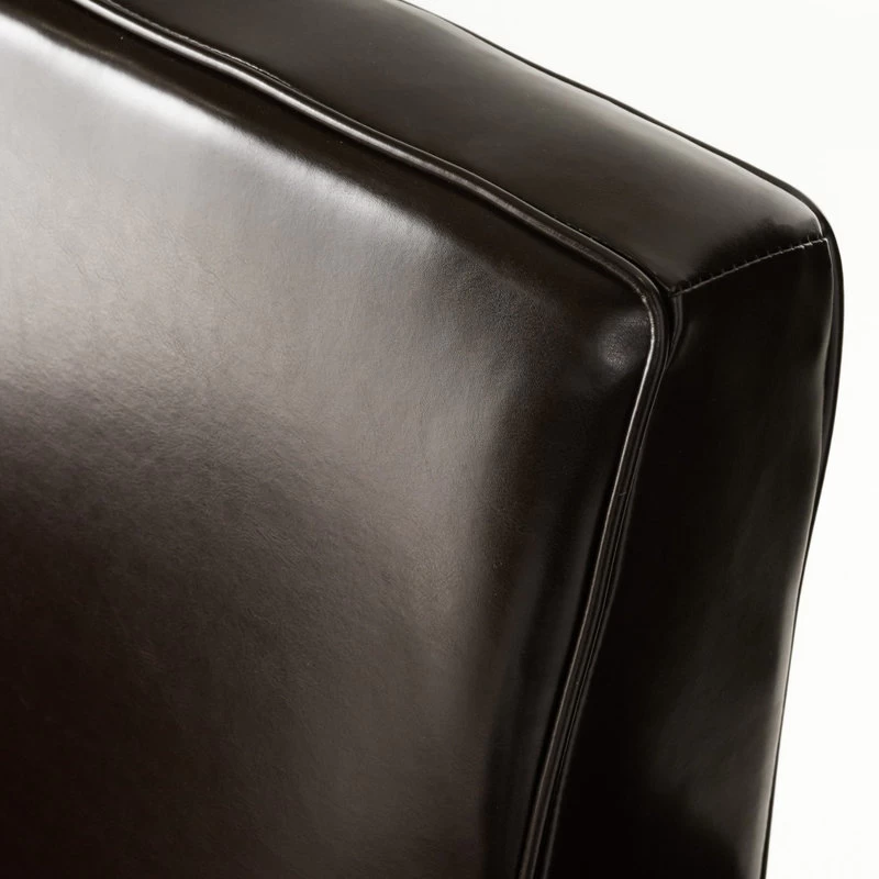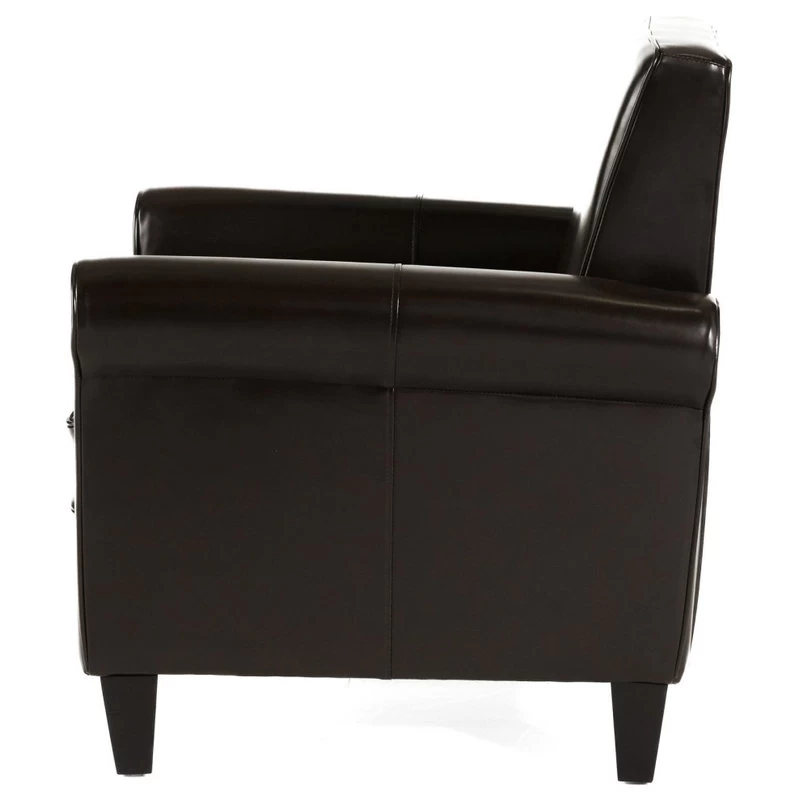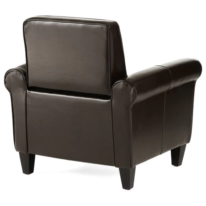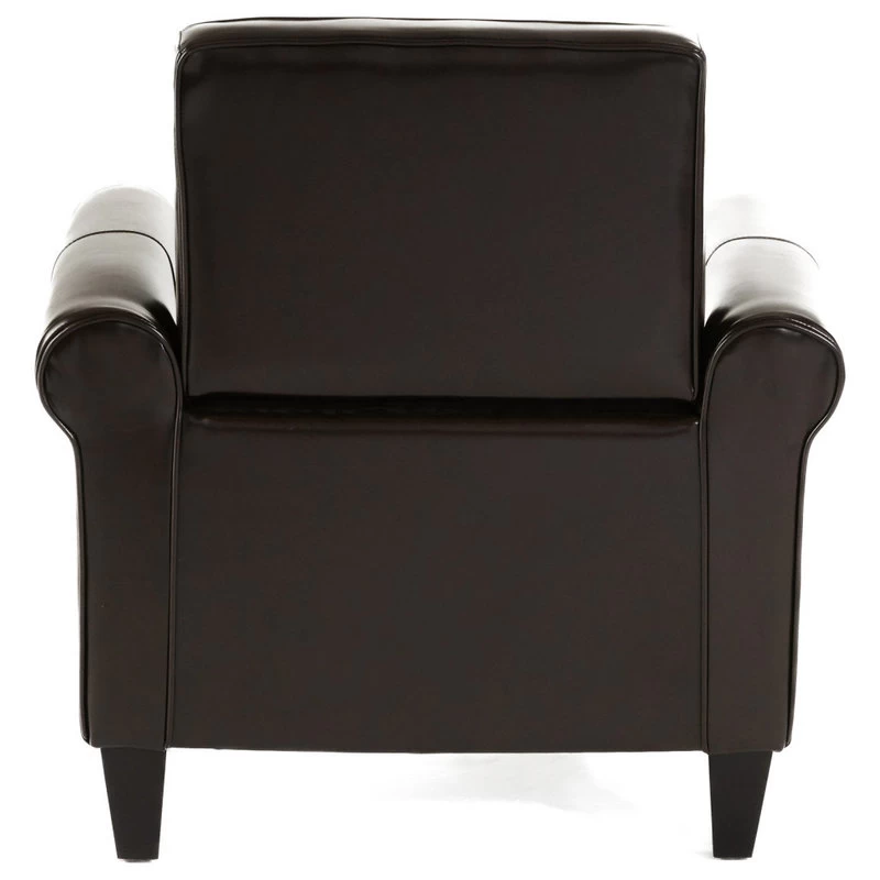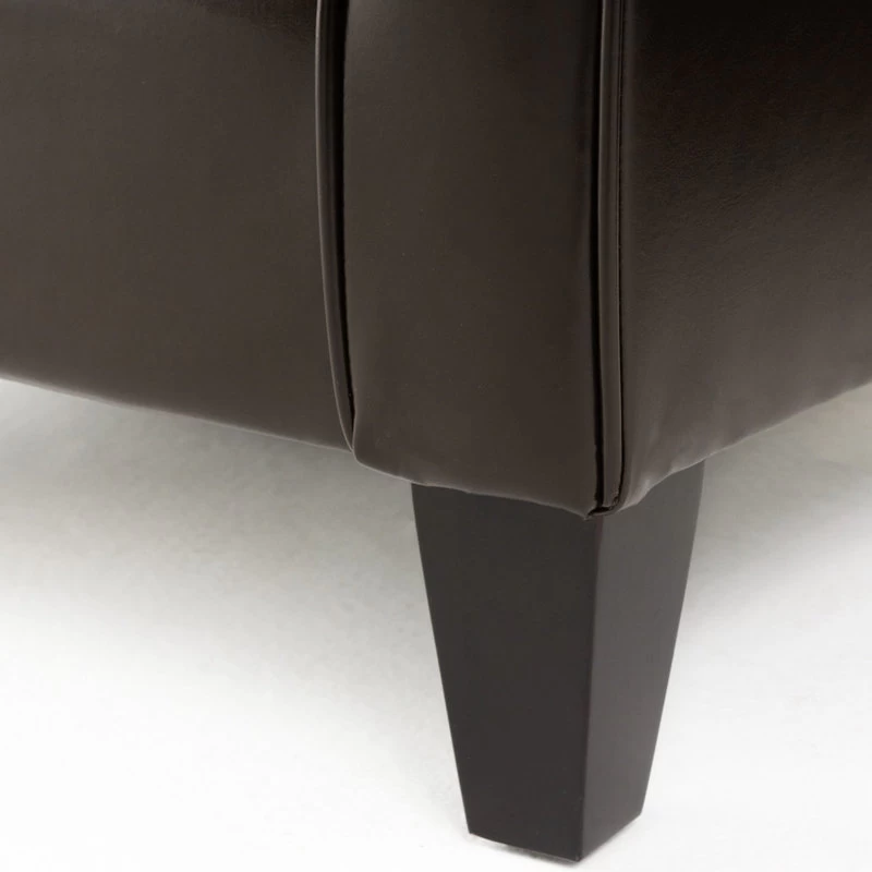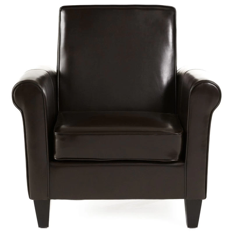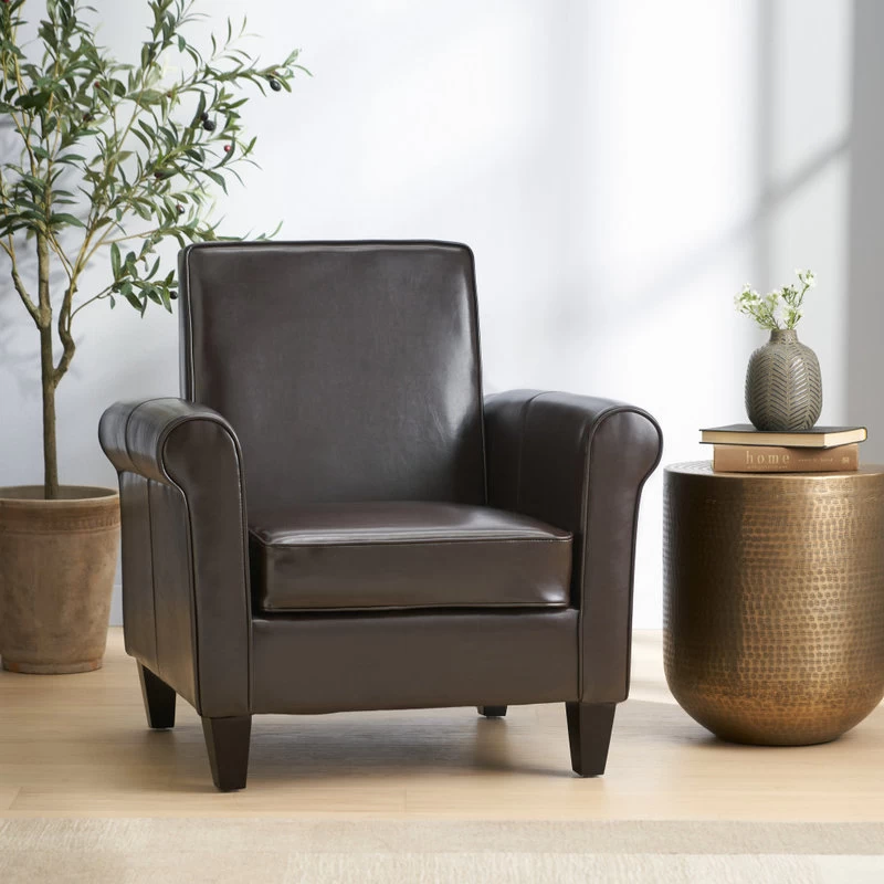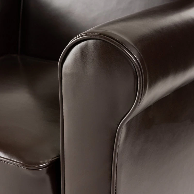 Petite leather club chair creates great comfort and style without taking up a lot of room in your living room, office, or bedroom. Unique squared back design with rounded arms creates a classic look that compliments the rich leather.
