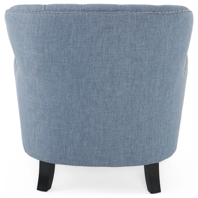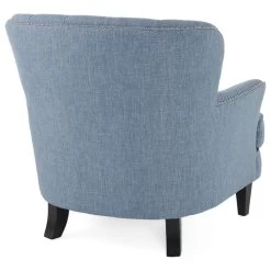 Drawing from cozy yet upscale aesthetics, our club chair is the perfect addition to your interior space. This comfortable seating will become the family favorite with its comfy upholstery, flared armrest design, and tapered wood legs. Finished with a stunning nailhead trim, this club chair is an ideal space to read your favorite book or watch a movie in the comfort of your own hom