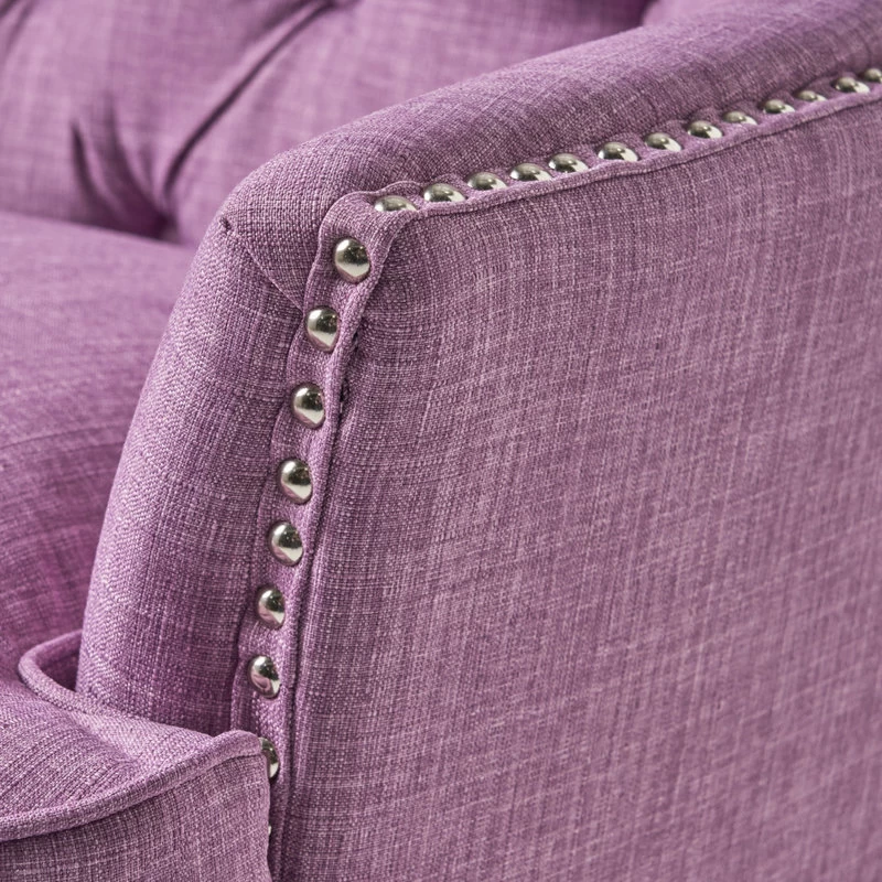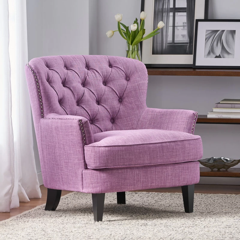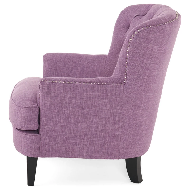Drawing from cozy yet upscale aesthetics, our club chair is the perfect addition to your interior space. This comfortable seating will become the family favorite with its comfy upholstery, flared armrest design, and tapered wood legs. Finished with a stunning nailhead trim, this club chair is an ideal space to read your favorite book or watch a movie in the comfort of your own hom