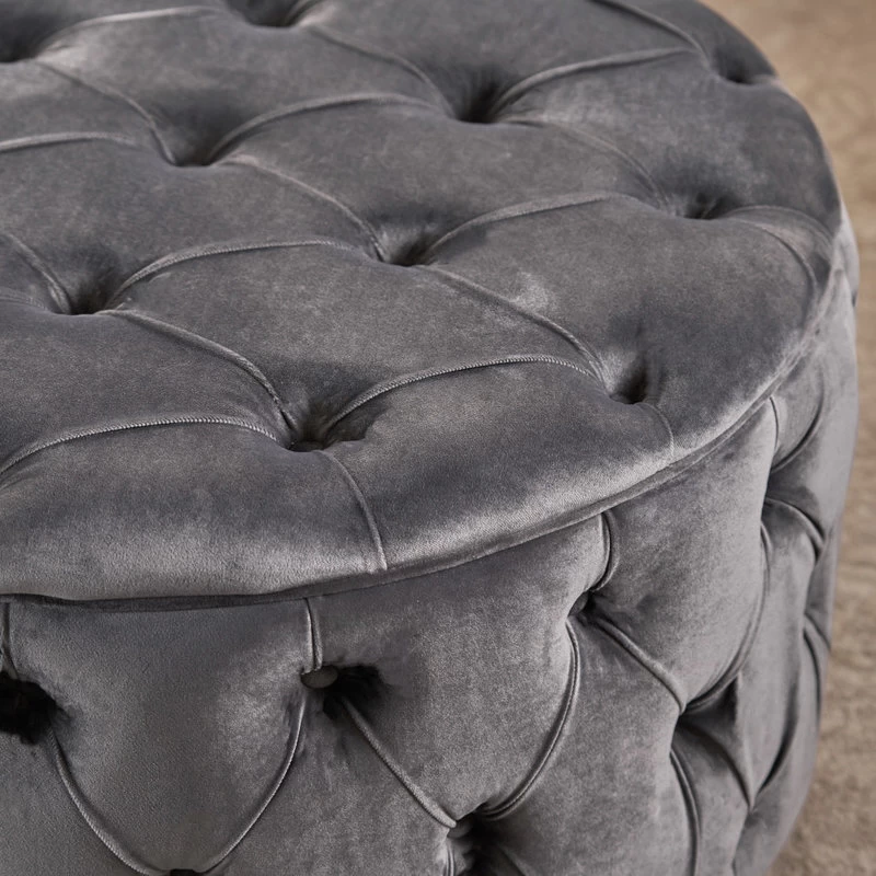 MODERN GLAM: Our ottoman showcases soft textures and jewel-like colors that pair seamlessly with gracefully curved lines for a luxurious modern glam look. Complemented with deep tufting and minimalistic structure, this ottoman brings a sleek touch to any decor.
