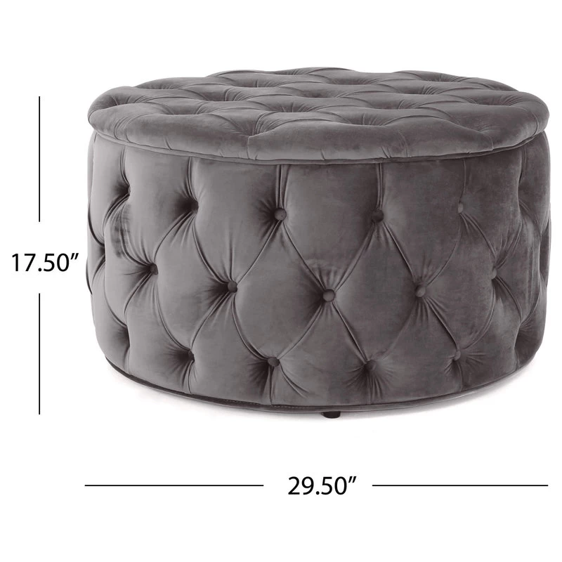 Stunning style and luxurious textures are just a click away from transforming your home. Featuring smooth velvet upholstery and button-tufted diamond stitching, this ottoman is a guaranteed win in any room. This ottoman offers a variety of versatile functions including extra seating for that unexpected guest or acting as a coffee table to hold a tray of snacks. Finished with a brilliant, jewel-like color, our ottoman offers a modern glam touch that easily enhances your decor in both convenience and style.