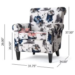 DIMENSIONS: Choose an accessory that is the perfect size for you and your furniture. This club chair is 31.75″ W x 34.00″ D x 37.50″ H. You will love how much your space can transform with the simple addition of this charming club chair.