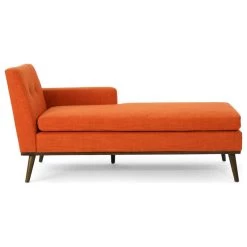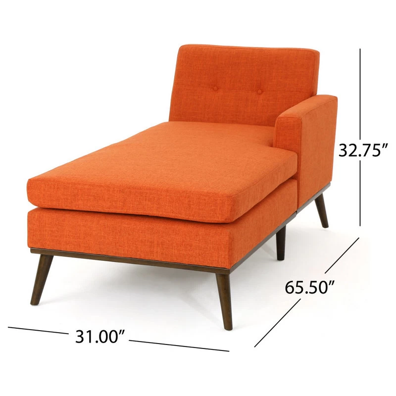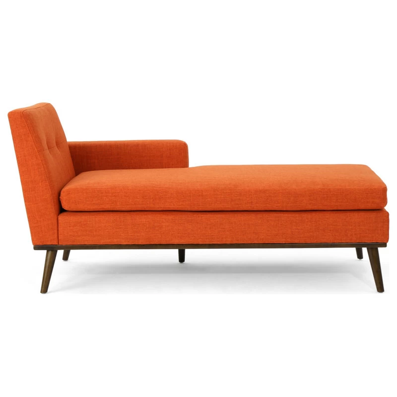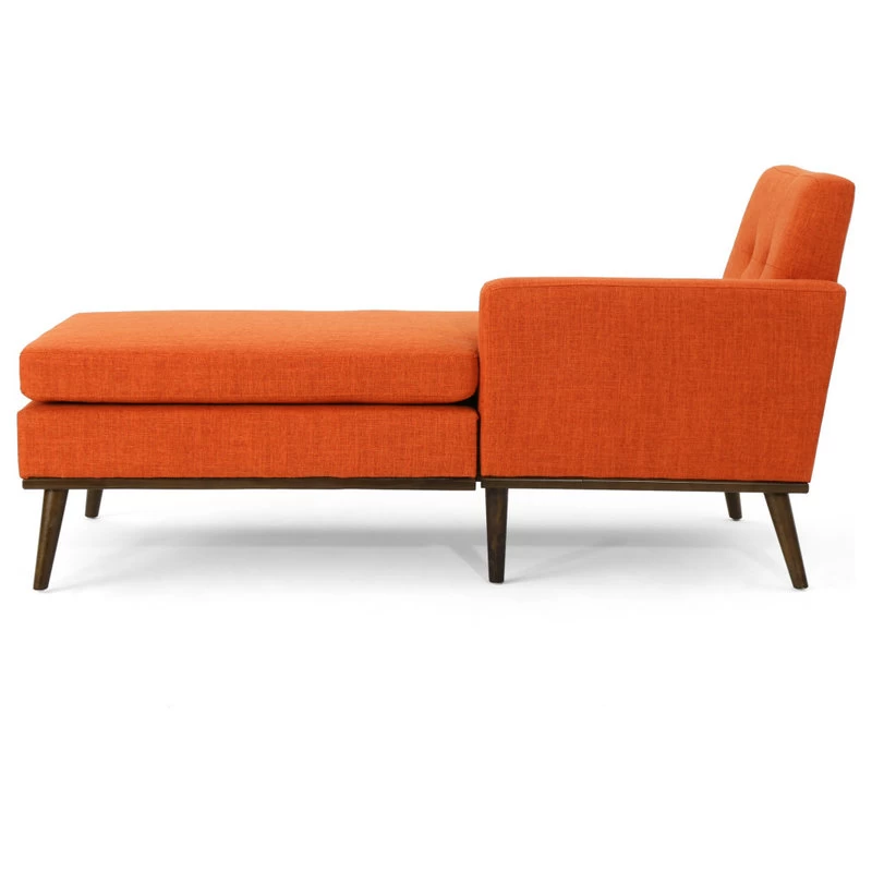 This mid-century modern chaise lounge is the perfect addition to any home. Featuring an extra cushioned seat with a cushioned backrest and left side armrest, this lounge is the ideal complement to any seating arrangement in your living room. Keep it off to the side as a small reading nook area or feature it alongside your couch as an extended part of your couch for the ultimate movie watching experience. You can’t go wrong with this lounge.
