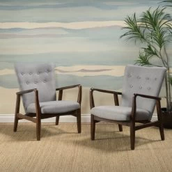 This arm chair is one that will suit any room. It stands on birch wood legs with a French twist and offers users comfortable seating with a modern look. The comfortable cushioned seats provides extra flair with a soft to touch fabric as well.