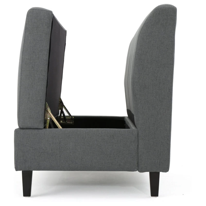 This cleverly designed loveseat opens featuring storage underneath. Use it to fill out your living room or to create a reading nook in a large bedroom. Including such highlights as birchwood legs and high-quality fabric, this is a versatile piece that will work in both modern and traditional spaces.