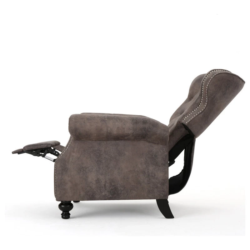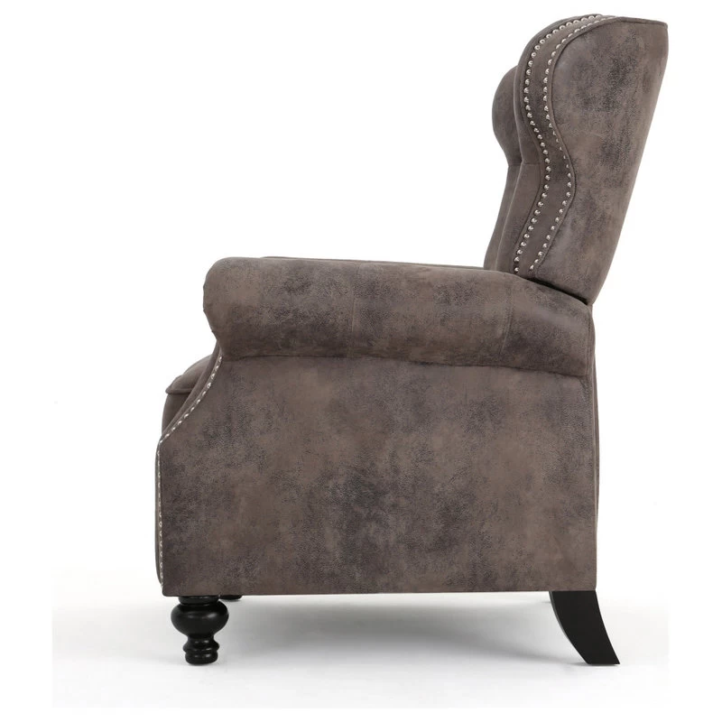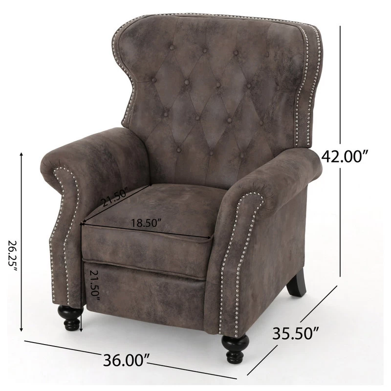 Complete your living room decor with a classic look. Our convenient recliner chair provides an incredibly high degree of leisure in an attractive package. Featuring stunning button tufted diamond stitching and classic nailhead trim, this recliner perfectly pairs style with its pushback functionality, allowing for ultimate comfort with little effort. Sure to become the new favorite spot of leisure, this recliner is something you and your family will surely enjoy.