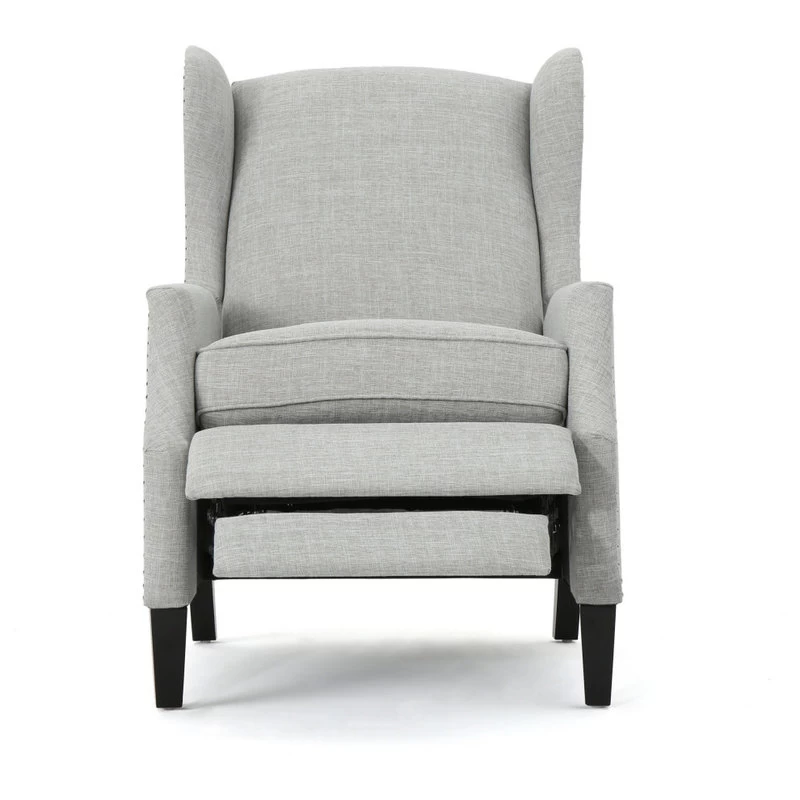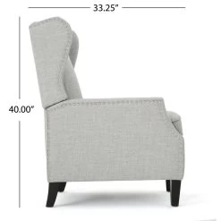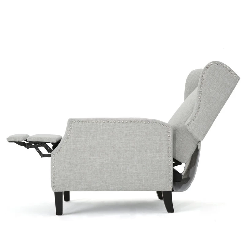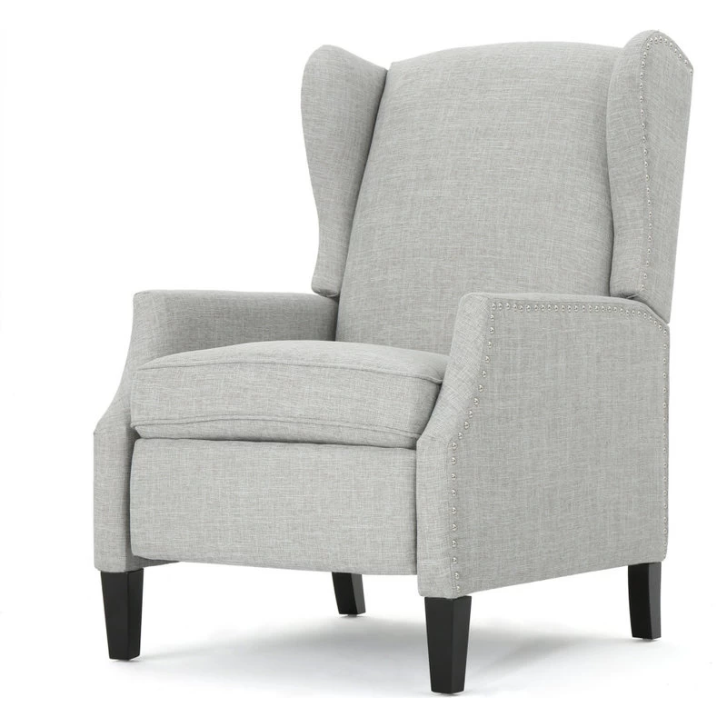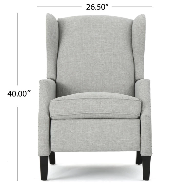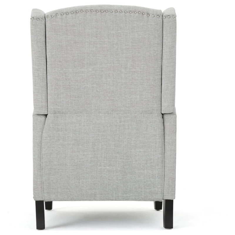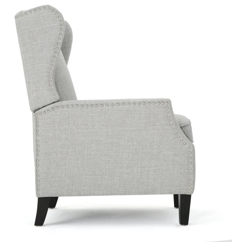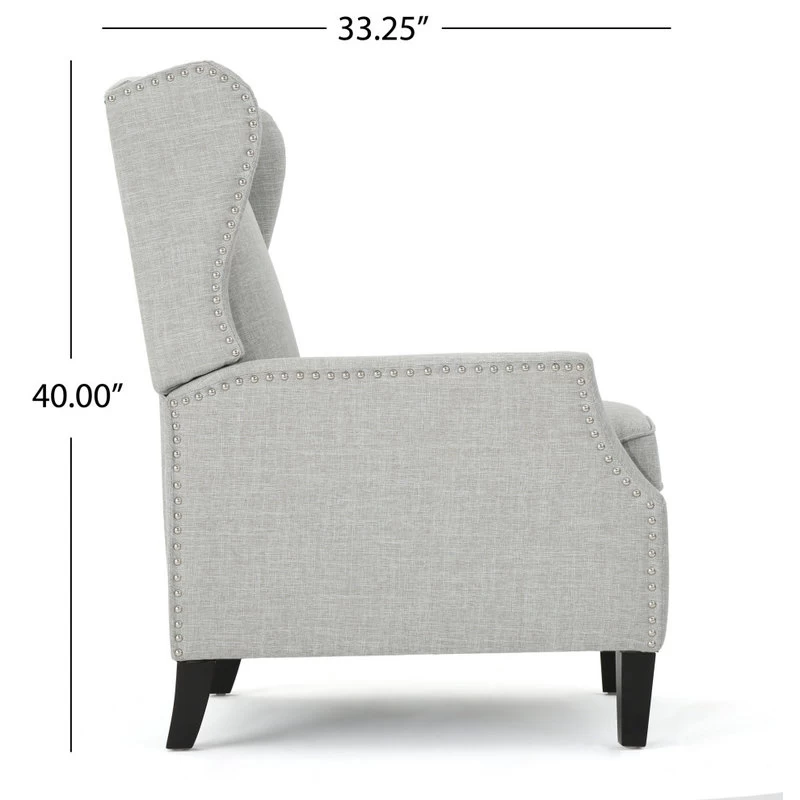 This wing back, traditional recliner is an ideal chair for any room in your home. Featuring a studded border on the sides, this recliner is both stylish and comfortable with its extra padded cushion. This recliner features smooth lines that complement any decor along with a soft color pallet.