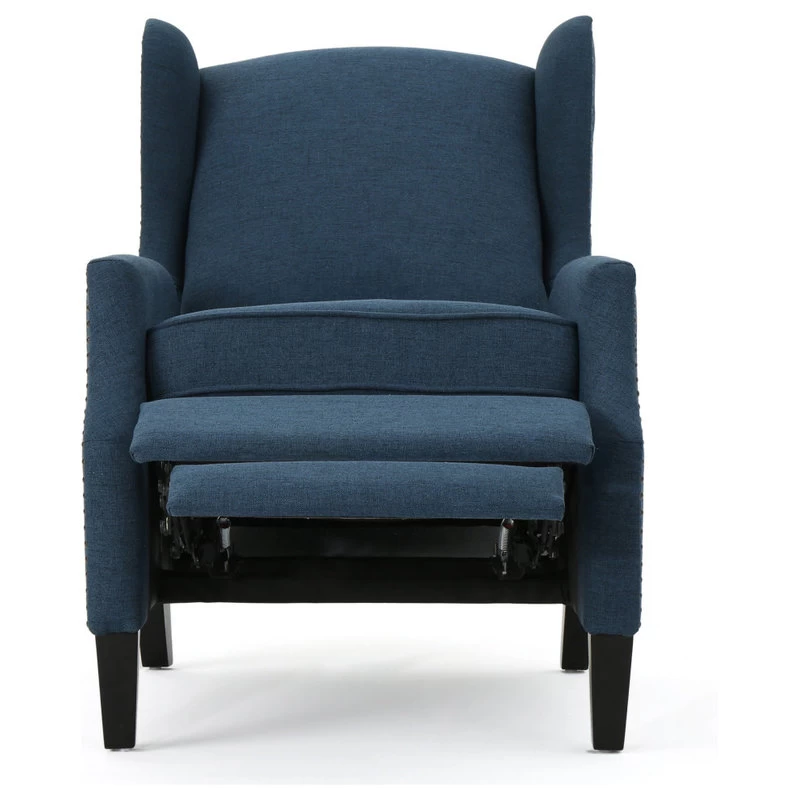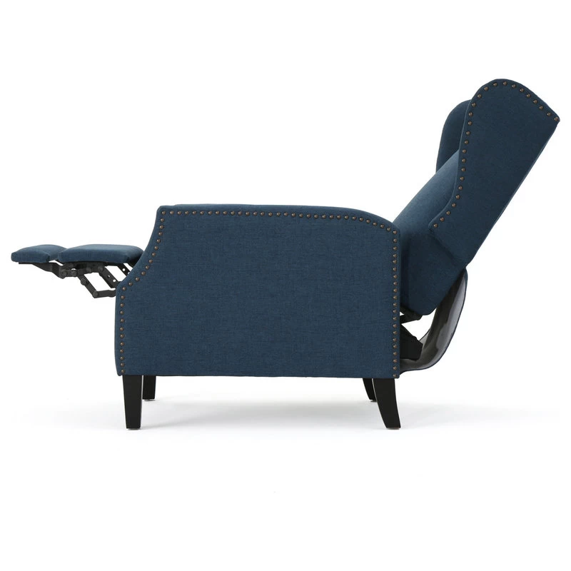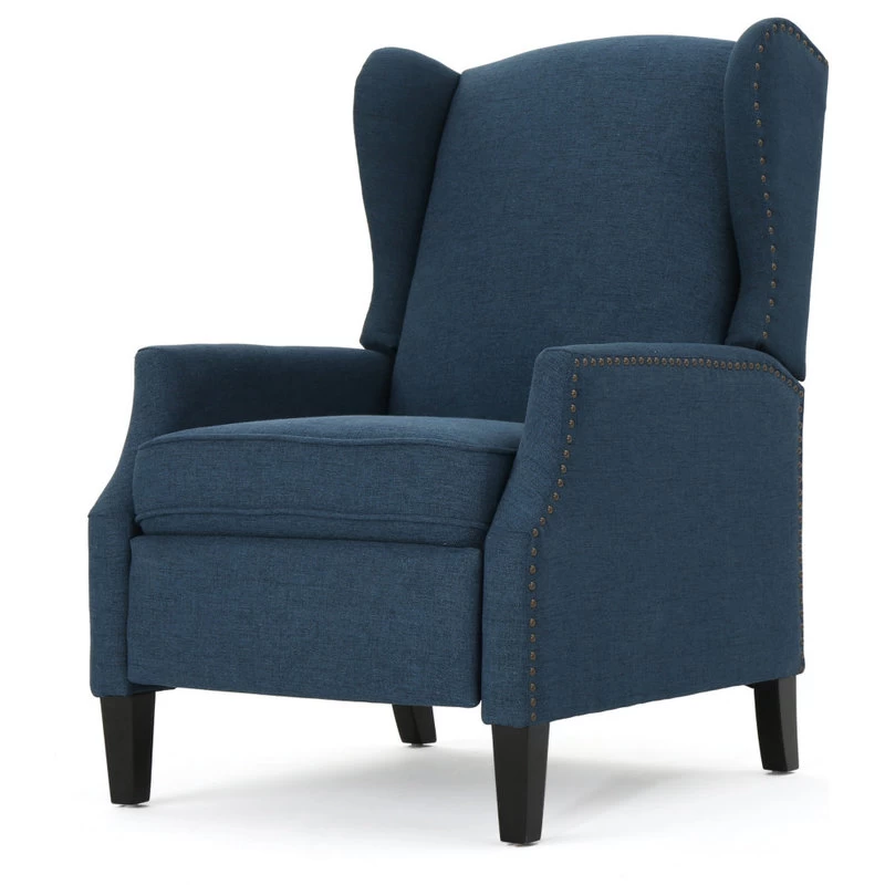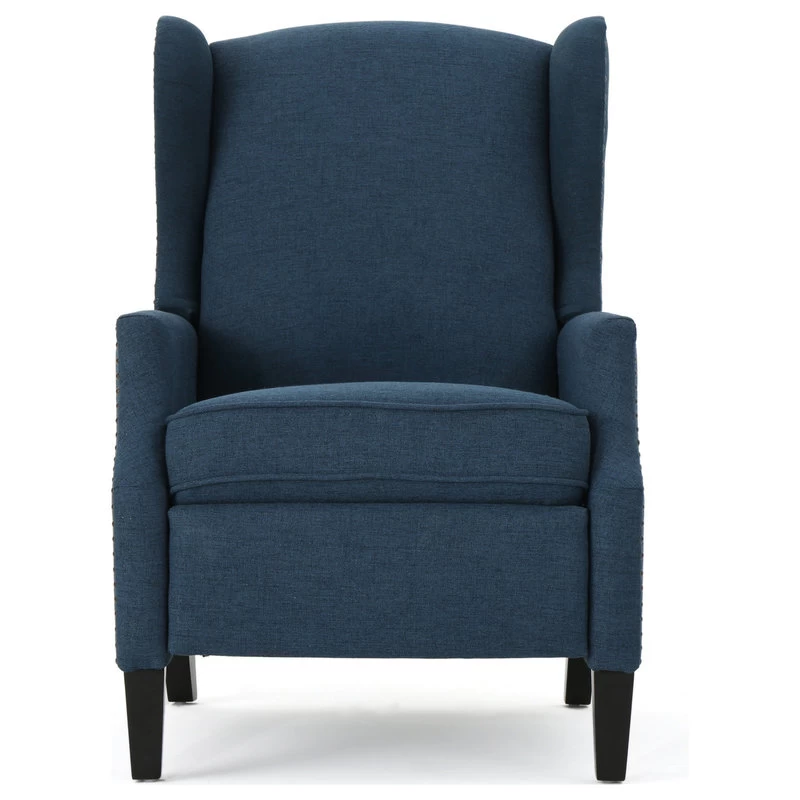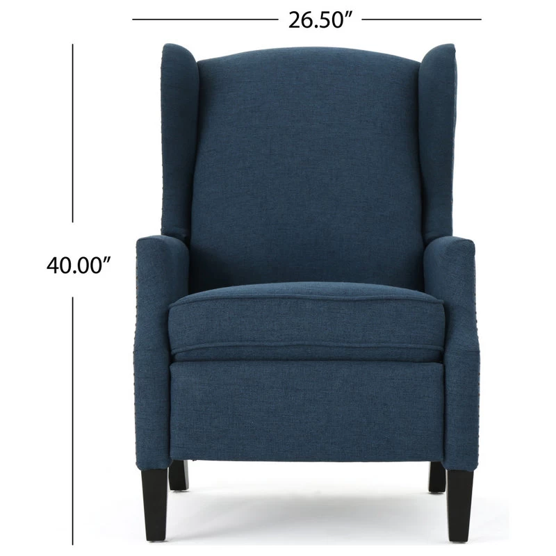 This wing back, traditional recliner is an ideal chair for any room in your home. Featuring a studded border on the sides, this recliner is both stylish and comfortable with its extra padded cushion. This recliner features smooth lines that complement any decor along with a soft color pallet.