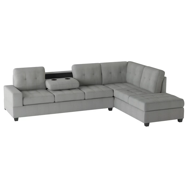 Providing a multitude of functional aspects, the Hedera Collection will be the perfect addition to your modernly styled living room. With a design that allows for this sectional to be configured as either a right or left side chaise,the versatility will make placement within your space a breeze. The dropdown seatback provides dual cupholders and flat surface for secure placement of your beverages and snacks.