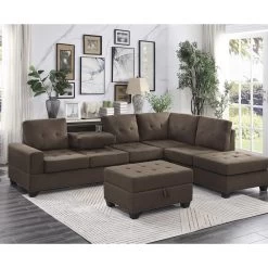 Providing a multitude of functional aspects, the Hedera Collection will be the perfect addition to your modernly styled living room. With a design that allows for this sectional to be configured as either a right or left side chaise, the versatility will make placement within your space a breeze. The ottoman and opens to reveal additional storage for your space, while the dropdown seatback provides dual cupholders and flat surface for secure placement of your beverages and snacks. The collection is offered in three distinct colors – light gray, chocolate and dark gray – for neutral decorative accent within your living room.