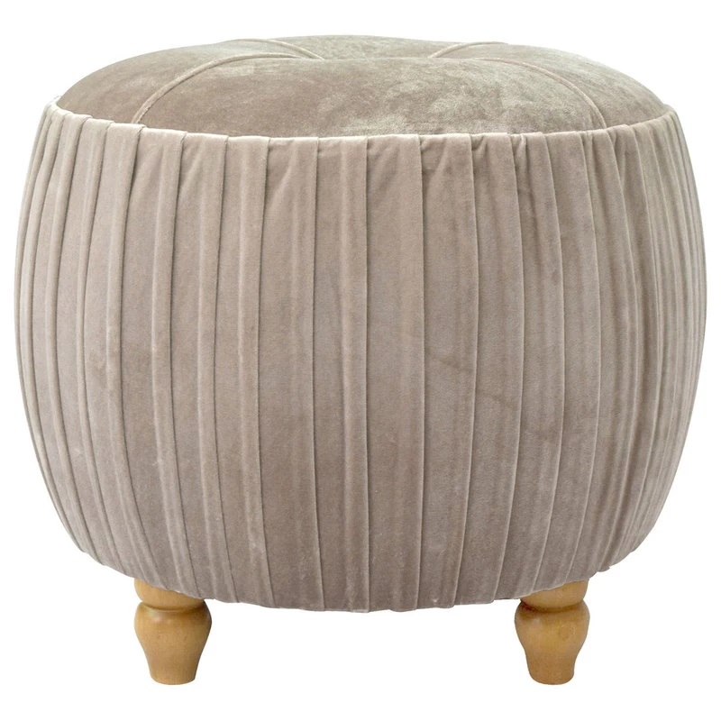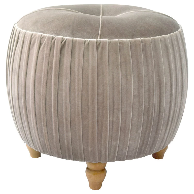 - Helena Small Round Ottoman Natural Wood Legs, Chamoise Taupe