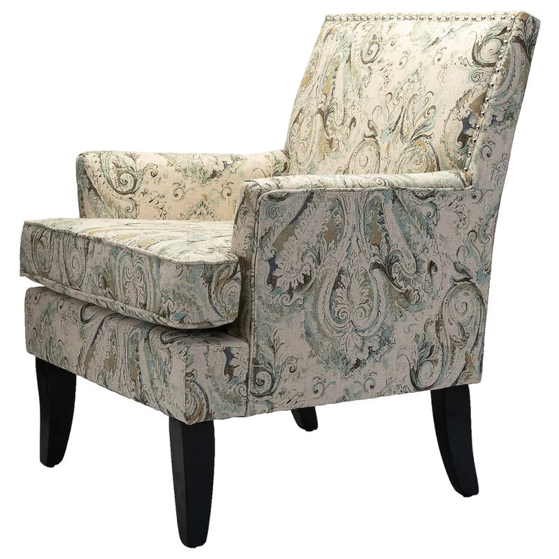 Classic style and contemporary design combine in this inviting armchair. Founded on a solid birch wood frame, this chair strikes a club chair silhouette with a slightly slanted backrest, clean track arms, and tapered block feet. Its classic design along with its gorgeous pattern and gleaming nailhead trim makes this chair a must-have in any home. It will be suitable for those urban dwellers with limited space.