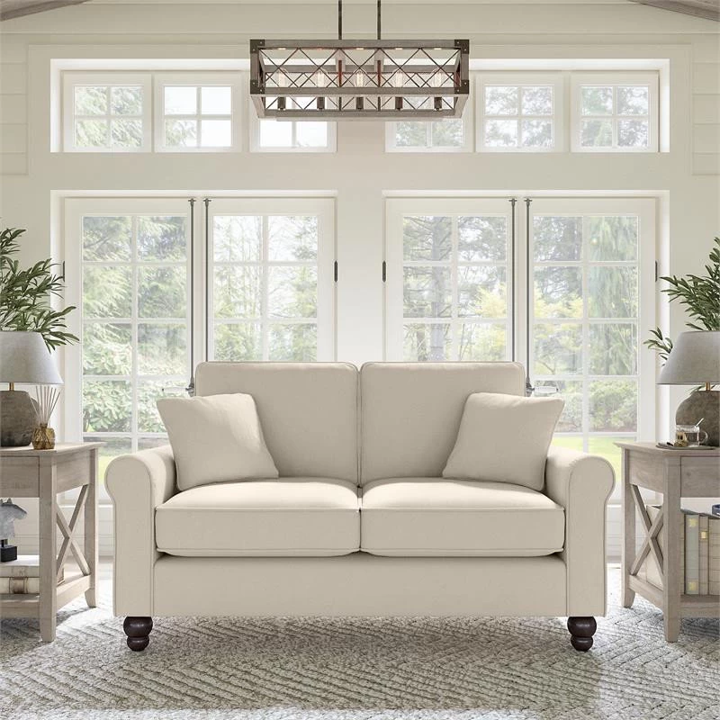 The Bush Furniture Hudson 61W Loveseat presents a living room seating solution with remarkable quality and durability to match its timeless style. Conveniently packaged for easy movement into any room or corridor, this ready-to-assemble two seater sofa is a great way to furnish a small apartment, large family home and everything in between. Relax with a good book or your favorite TV show on a small couch with high-density cushioning and pocket coil seat springs that maintain their shape and feel for years of comfort. Reversible cushions feature pet-friendly StainGard(TM) fabric that repels dirt, oil, water and other liquids to prevent blemishes. The framework includes a quiet sinuous spring design with cross supports that won’t sag over time. This small sofa has been rigorously tested for safety, durability and stain resistance and is backed by a 1 Year Warranty.