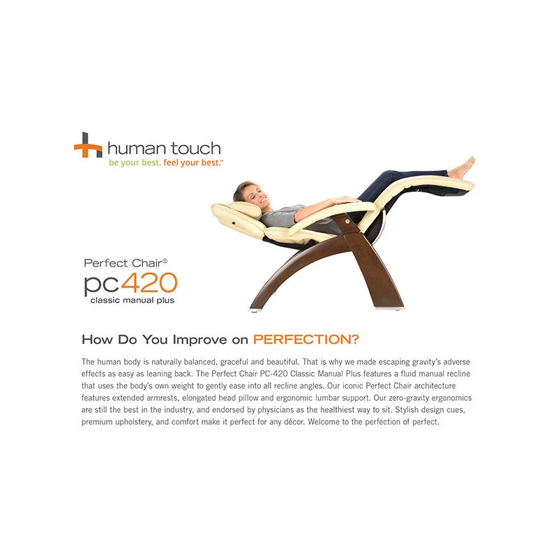 Human Touch PC-420 Classic Manual PLUS Walnut Wood Perfect Zero Anti Gravity Recliner Chair – New PC-420 Classic Manual Plus Perfect Chair features longer armrests support your arms even in the reclined position.