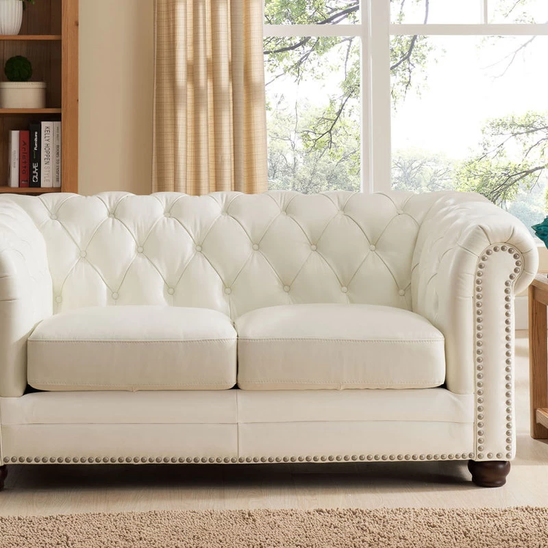 The Aliso leather collection is exquisite in design with full back and arm diamond tufting and brass nail head trims. This collection is not only about style, down feather seating cushions offer you lasting comfort.