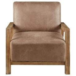 Add a sophisticated update to your living room with the INK+IVY Easton Accent Chair. Upholstered in taupe polyurethane leather, this accent chair features solid wood arms and frame with a reclaimed wood finish, for a contemporary look. Sit in luxurious comfort and bring an elevated touch to your home decor. Assembly is required and a tool is included.