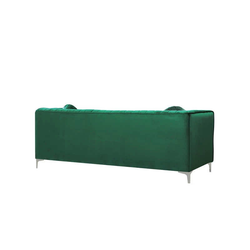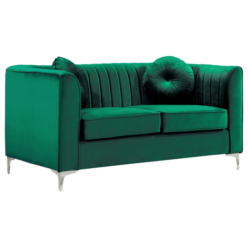 The Isabelle Collection by Meridian Furniture. Features beautifully designed velvet upholstery with custom chrome legs. This collection is guaranteed to be the highlight of any home. Throw pillows included.
