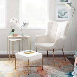 Add a luxurious touch of glam to your seating area with the cozy Izzy Lounge Chair and Ottoman Set by LumiSource. This set features modern gold metal legs that support a soft velvet upholstered seat with subtle pleated accents. Available in a variety of colors and materials, choose the one that fits your space best.