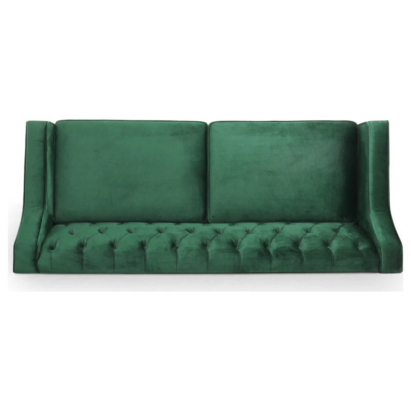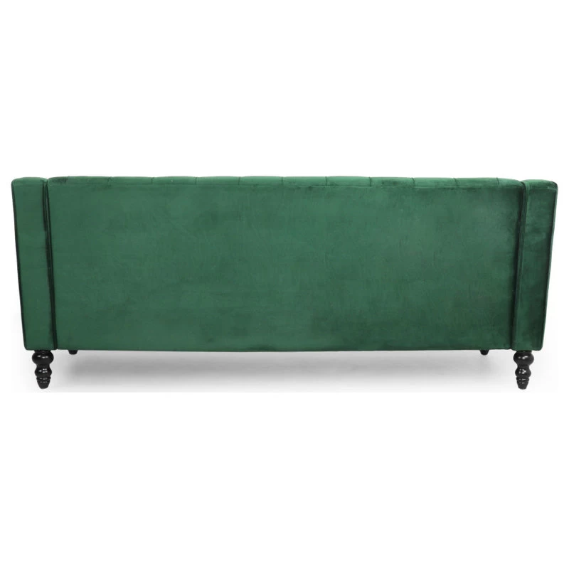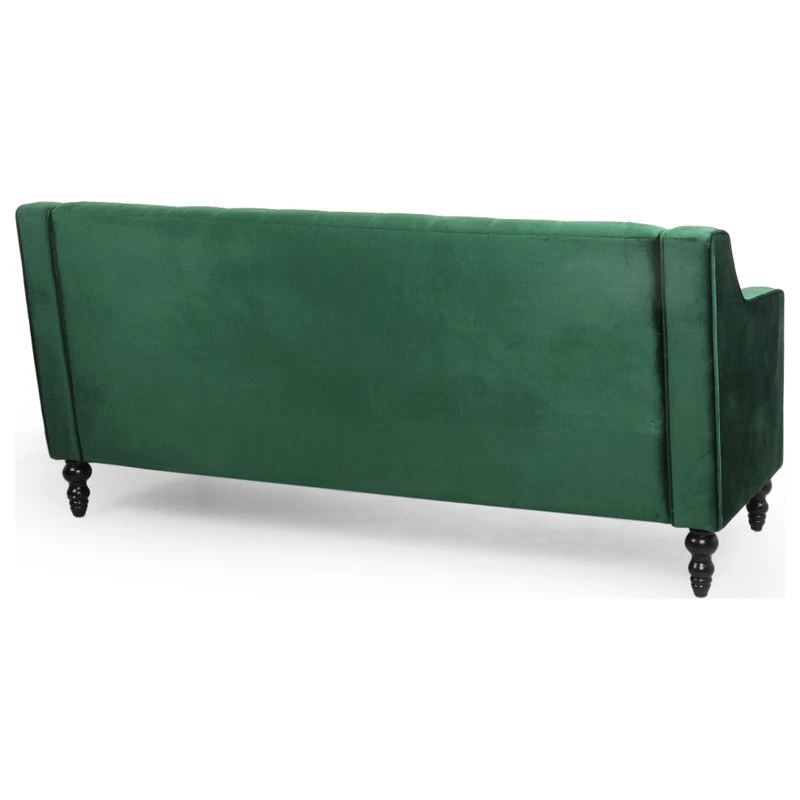 Stretch out in leisure on a lovely sofa that will not only anchor your home in refined style but also offer luxurious comfort for you and your guests. Featuring velvet upholstery, this sophisticated sofa is the perfect addition for any interior space. This takes gorgeous button tufted diamond stitching and sloped arms for a graceful structure, easily anchoring your decor in an atmosphere of contemporary elegance. This sofa is finished with beautifully turned wood legs, bringing impressive style and outstanding durability to your home.