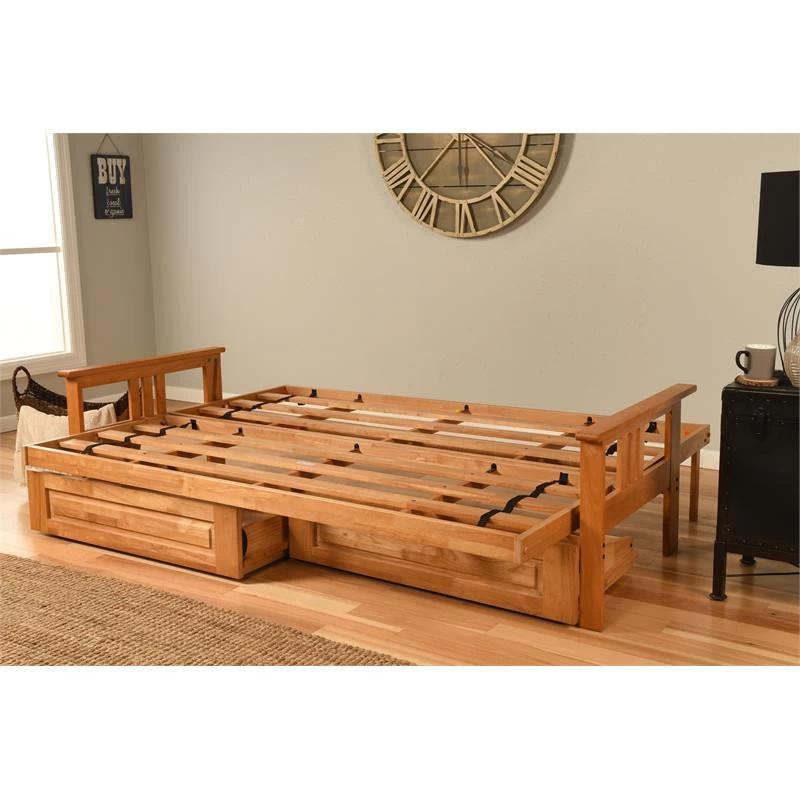 The Monterey futon is a classic hardwood frame with mission style arms. This unique and versatile Queen-size futon sofa easily converts to a Bed. This multifunctional piece of furniture can find a home in just about any type of room.